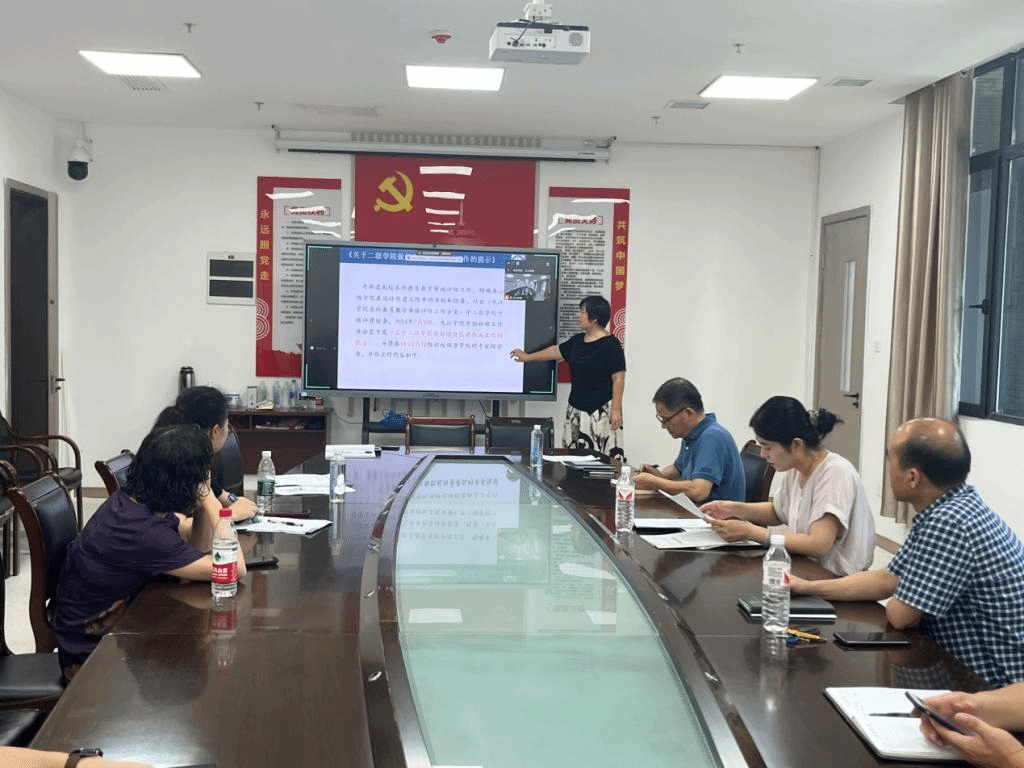 首先王庆军简要汇报了目前审核评估工作整体进展及任务分工情况。她指出自2023年10月学校审核评估工作启动以来,自评自建工作开展已接近10个月时间,学院组织进行了《建设工作方案》解读学习,成立了审核评估工作领导小组,明确了组成人员及人员分工。各科室各教研室根据《审核评估任务分解表》,对具体审核评估工作进行了布置。目前各项教学档案材料、教学管理制度汇编等正在梳理和完善,教师教学能力的检查和提升正在有序展开。下一步工作任务是梳理学院近三年相关数据材料,凝练学院特色,完成自评报告撰写。