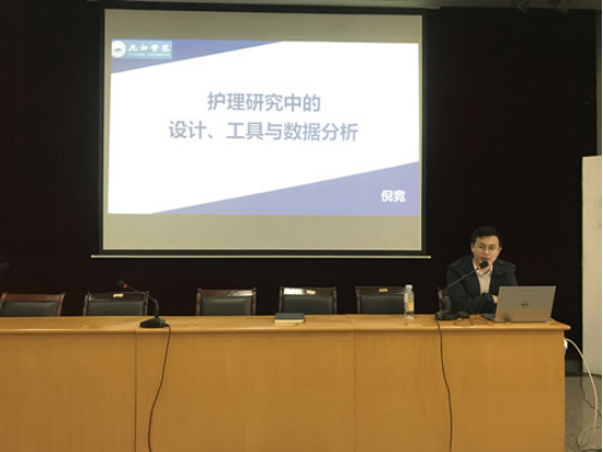 为促进学院师生科研活动交流,进一步提高本科毕业论文的质量和水平,420下午,6776永利集团护理人文教研室主任倪竞博士在立本楼报告厅主讲了题为《护理研究中的研究设计、工具及数据分析方法》的科研专题讲座。