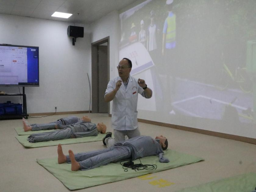 培训中,袁荣华致力于使用数字化、可视化、科学化技术进行授课,利用丰富的教学经验,生动风趣的语言激发同学们的学习热情,耐心指导,采用理论讲解和操作演示相结合的教学培训形式,讲解了心肺复苏术、止血、包扎和固定等急救操作的理论知识,并进行详细的教学演示。同学们受益匪浅,积极学习,迅速掌握了心肺复苏术、螺旋反折包扎和绞紧止血法等急救方法。