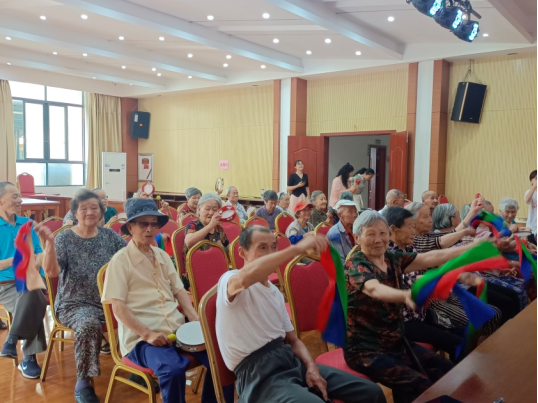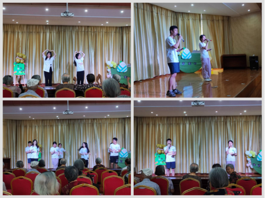 粽叶飘香,情暖“夕阳”。声情并茂的朗诵下,石钟情养老城小型联欢会拉开帷幕。活动内容丰富,歌舞齐全。双人合唱《祖国不会忘记》铿锵有力,让台下老人惊叹连连,拍手叫好;婉转且感情充沛的《情非得已》和《日不落》展现出青春的蓬勃活力与朝气;精心准备的武术表演《少年拳》、手势舞《虫儿飞》,获得一片赞扬;大合唱《明天会更好》感染了现场的老人,纷纷挥动手中的彩带,七彩斑斓的彩带在空中交相辉映,为养老城增添了别样的色彩。“红细胞”们满怀真挚之情,为老人排解孤独,驱散愁绪,给老人的生活带来了生机与活力。