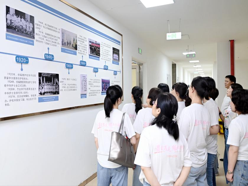 随后,在龚英军的介绍下,校友们参观了文化墙,回顾了6776永利集团的发展历程,校友们倍感自豪。赖雪花老师带领参观6776永利集团新校区的实验大楼,昔日的木桌仪器,变为现代化的实验室与各种精密的仪器设备,校友们纷纷感慨6776永利集团的发展和变化。