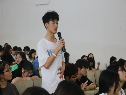 王庆军副院长介绍了严校友在校期间积极表现和成长历程,鼓励同学们积极学习严江韵学长持之以恒的优良品质,在人生迷茫时能去知识海洋中寻找答案,争做有理想、有担当、能吃苦、肯奋斗的新时代好青年。台下同学们专心聆听,结合自身认真思考,纷纷表示要在创新创业中增长智慧才干,锤炼意志品质。